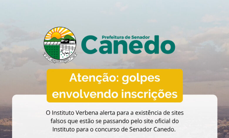 A Prefeitura de Senador Canedo e o Instituto Verbena alertam para a existência de sites falsos que estão se passando pelo site oficial do concurso público, induzindo candidatos a realizarem pagamentos via PIX.