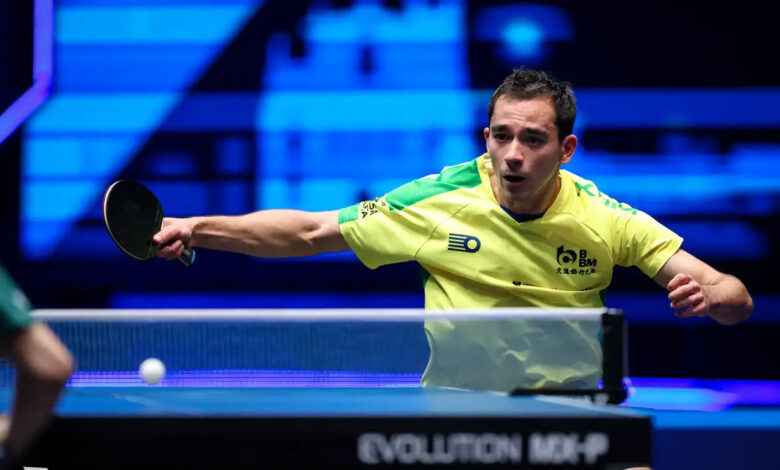 Atual número 2 do mundo, o mesatenista carioca Hugo Calderano estreou com duas vitórias no WTT Singapura Smash, um dos quatro grandes torneios da temporada, que distribui a maior pontuação no ranking (4 mil pontos). O primeiro triunfo desta segunda-feira (23) alçou o brasileiro às oitavas de final da chave principal masculina. Calderano derrotou o alemão Ricardo Walther (70º no ranking) por 3 sets a 1, com parciais de 11/1, 9/11, 11/7 e 11/4.